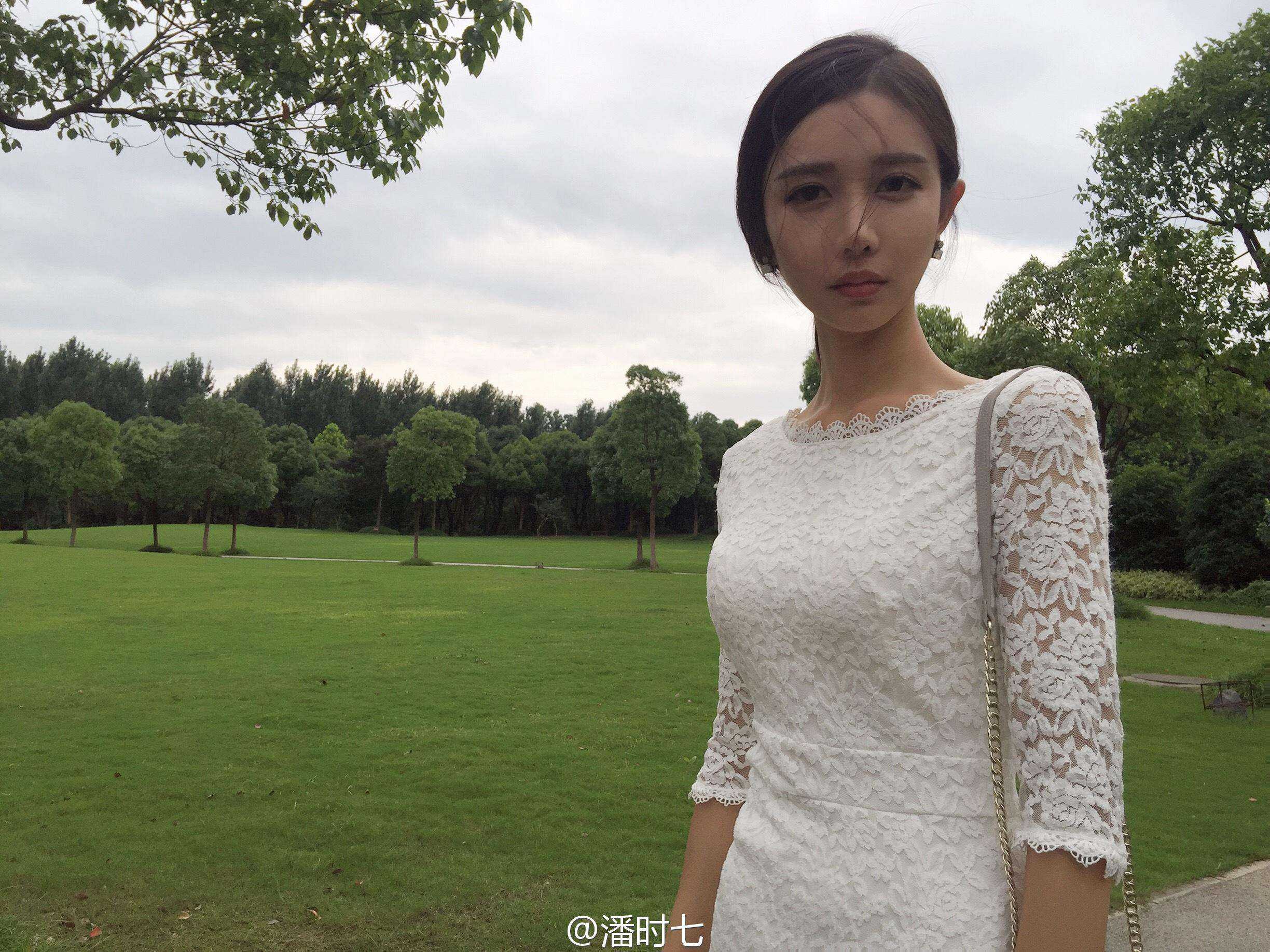 在这组被标注为“生活照”的写真中,我们可以看到潘时七尝试了多种风格。部分照片中,她以简约的装扮出镜,高跟凉鞋搭配修身短裙,展现修长腿部线条,整体造型清新自然,散发着随性而优雅的生活气息。这种“裸腿”与高跟的搭配,恰恰凸显了其身材比例的优越和驾驭简约时尚的自信。