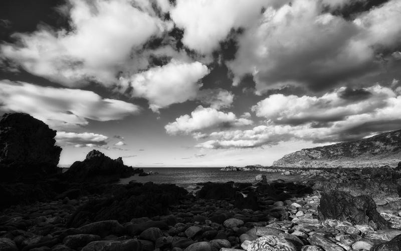 阴郁天空下孤独行走的剪影,身影渺小映衬出内心的孤立与绝望